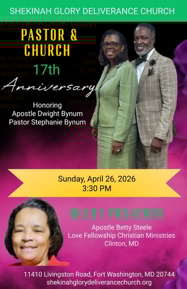 We’re honored that you’ve taken the time to visit us online, and we invite you to experience Shekinah Glory Deliverance Church in person. Our services are led by the Holy Spirit, not by a program. We believe the Bible, live by the Bible, and teach the Bible with clarity and love.