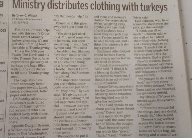 For the volunteers helping with this year’s Crossroads Street Ministry turkey giveaway, it’s not just about putting food on the table at Thanksgiving.